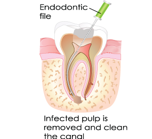 In order to access the infected tooth pulp, your doctor for root canals makes an opening through the top of the tooth to get down into the pulp chamber. A tiny instrument, called a dental file, is then carefully used to clean out the infected tissue and to shape the root canals to receive the filling material. X-rays will be taken to ensure that all of the infected pulp is removed before the filling is placed and to confirm that the filling material reaches the ends of the canals in each root.